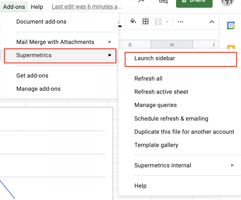 Once you’re all set, go ahead and launch the Supermetrics sidebar.