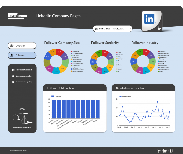 To save you from all the hassle, we created a plug-and-play LinkedIn company pages dashboard for Looker Studio . With it, you can easily keep track of your performance.