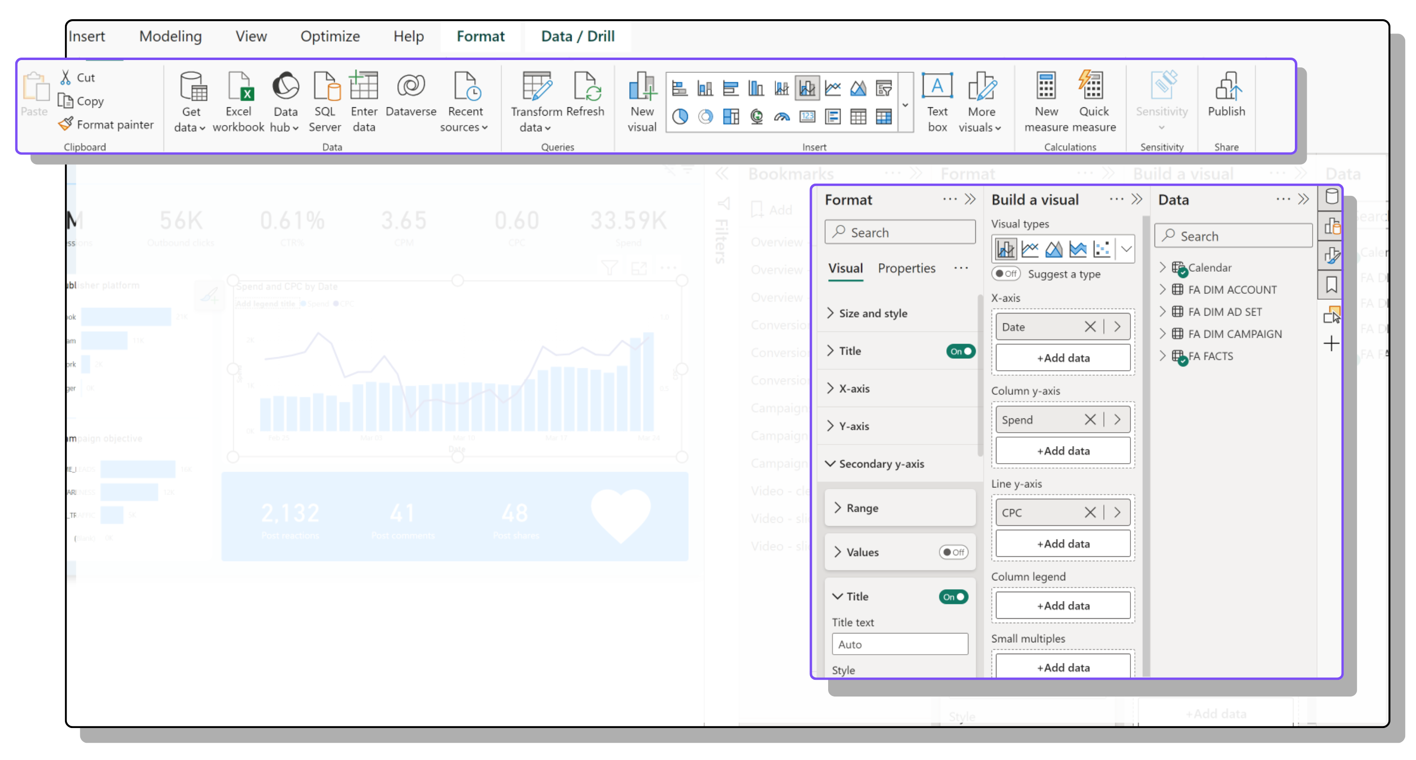 Compared to Looker Studio, Power BI has more advanced and powerful data transformation features. One feature that we love is data analysis expressions (DAX ), which allows users to create new data tables and complex calculations.