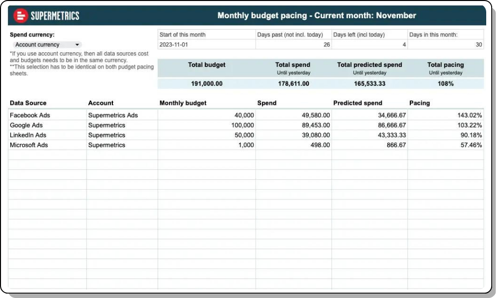 If budget pacing interests you, don’t forget to also check out our article Automate ad spend tracking and budget pacing with Google Sheets and Supermetrics [Free cheat sheet and template included]
