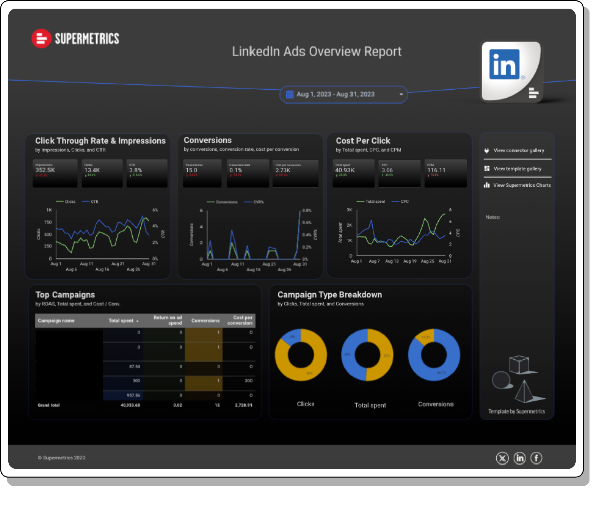 You can use this template to gain valuable insights into your LinkedIn Ads campaign performance, including: