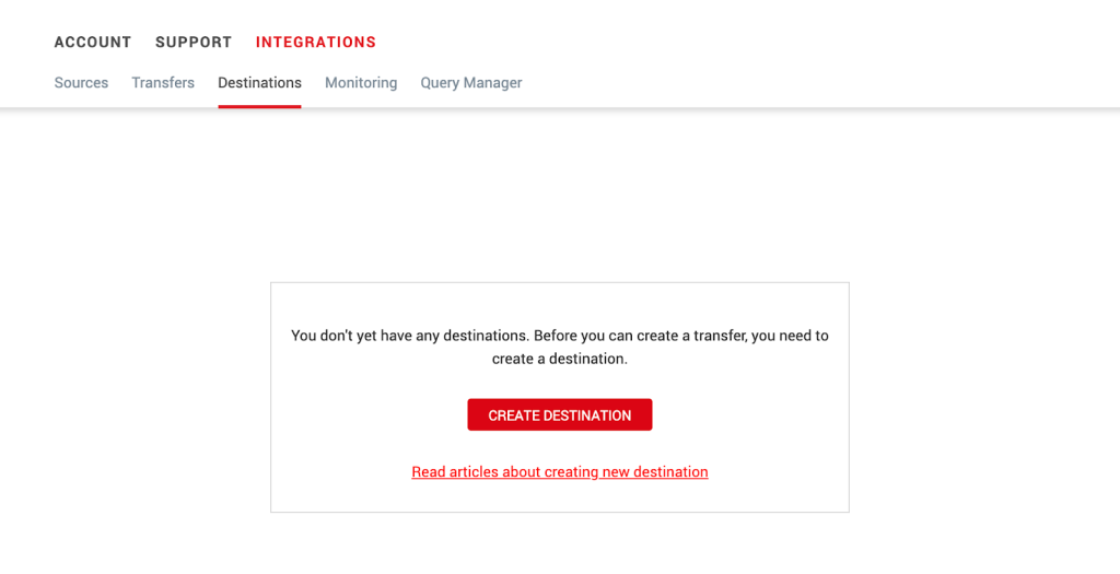 Once you’ve signed in with your Google or Microsoft account, navigate to the “Destinations” tab, and choose “Create destination”.
