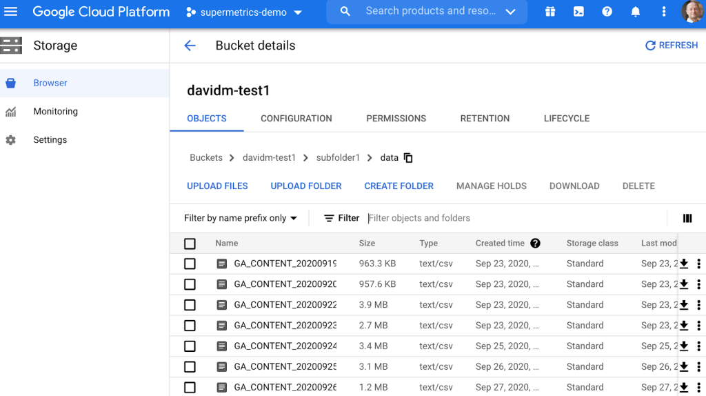 Once your transfer is complete, your cloud storage bucket should look a little something like this.