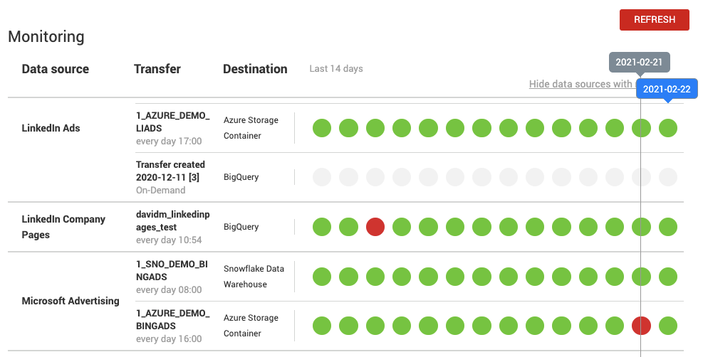 Once your transfers are up and running, you can view them under the “Monitor” tab.