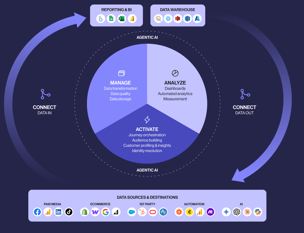 This is where you close the loop. Instead of just focusing on reporting, you can take one step further and push the data you’ve already analyzed and transformed back to the marketing platforms.