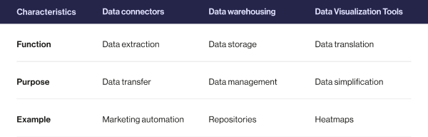 - Data connectors: Marketing automation software used to extract data from a variety of sources, which is then sent to a central repository, database, or marketing platform.