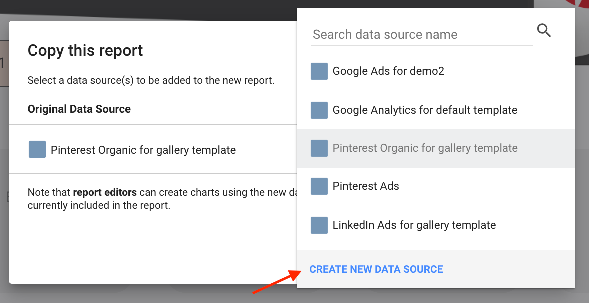 Next, under the “New data source” field, click on the drop-down menu and choose “Create new data source.”