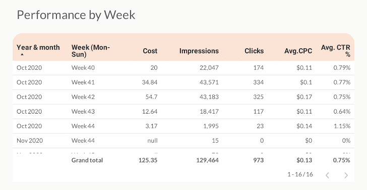 Next, you’ll see a table showing your weekly performance.