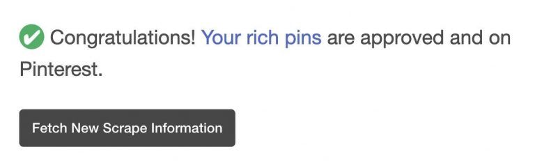 That’s it. If Pinterest was able to find your metadata, you’ll then receive a message saying that your Rich Pins have been approved on Pinterest.