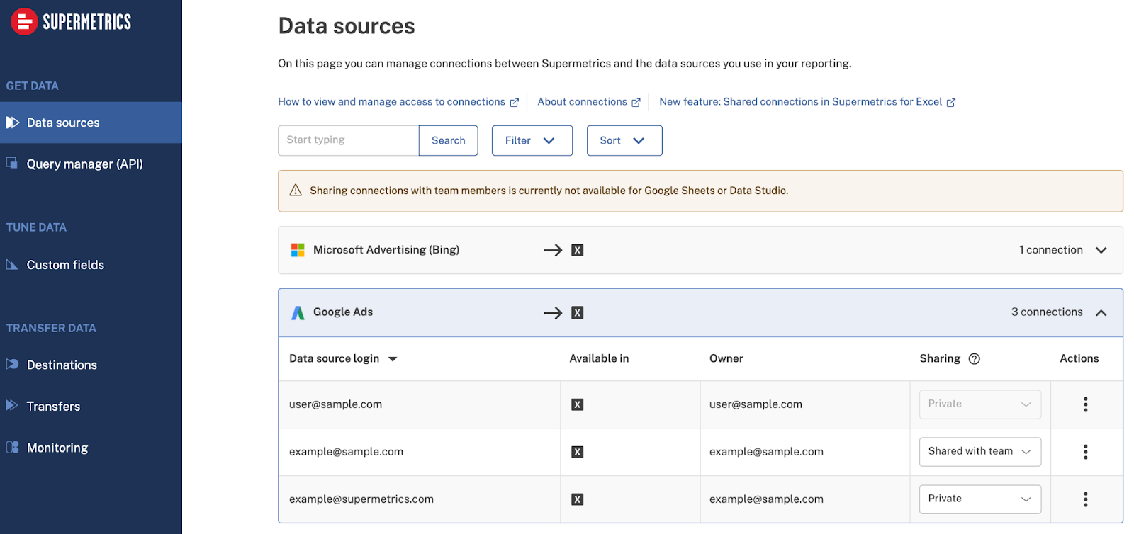 As more of our products support this feature, you will get access to all your connections in any data destination you use with Supermetrics, as long as it is the same team. If you have any technical issues or concerns, please reach out to our support team — we’re always happy to help!