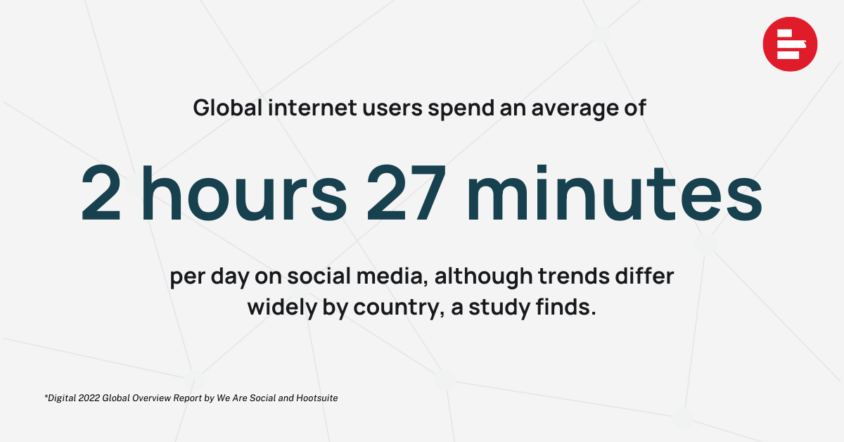 Global internet users spend an average of 2h 27min daily on social media . And social media isn’t just all cat videos—people turn to social media to be entertained and inspired. They seek out advice and engage with their favorite creators or in their favorite communities.