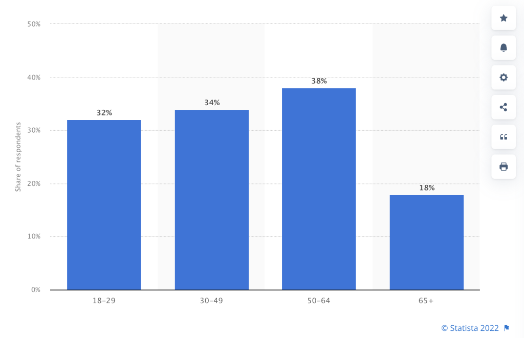 Percentage of US adults who use Pinterest as of February 2021, by age group. Source: Statista