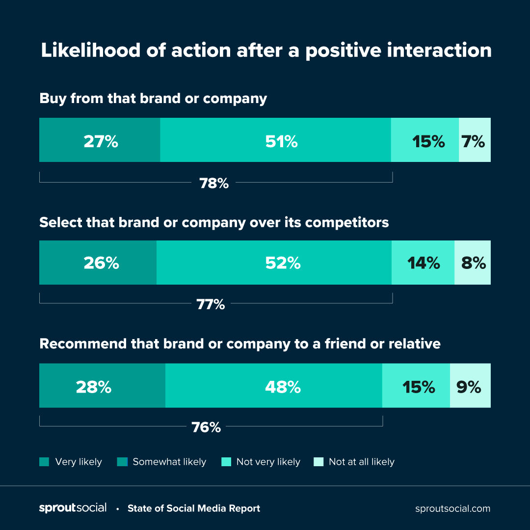 Likelihood of action after a positive interaction. Source, Sprout Social.