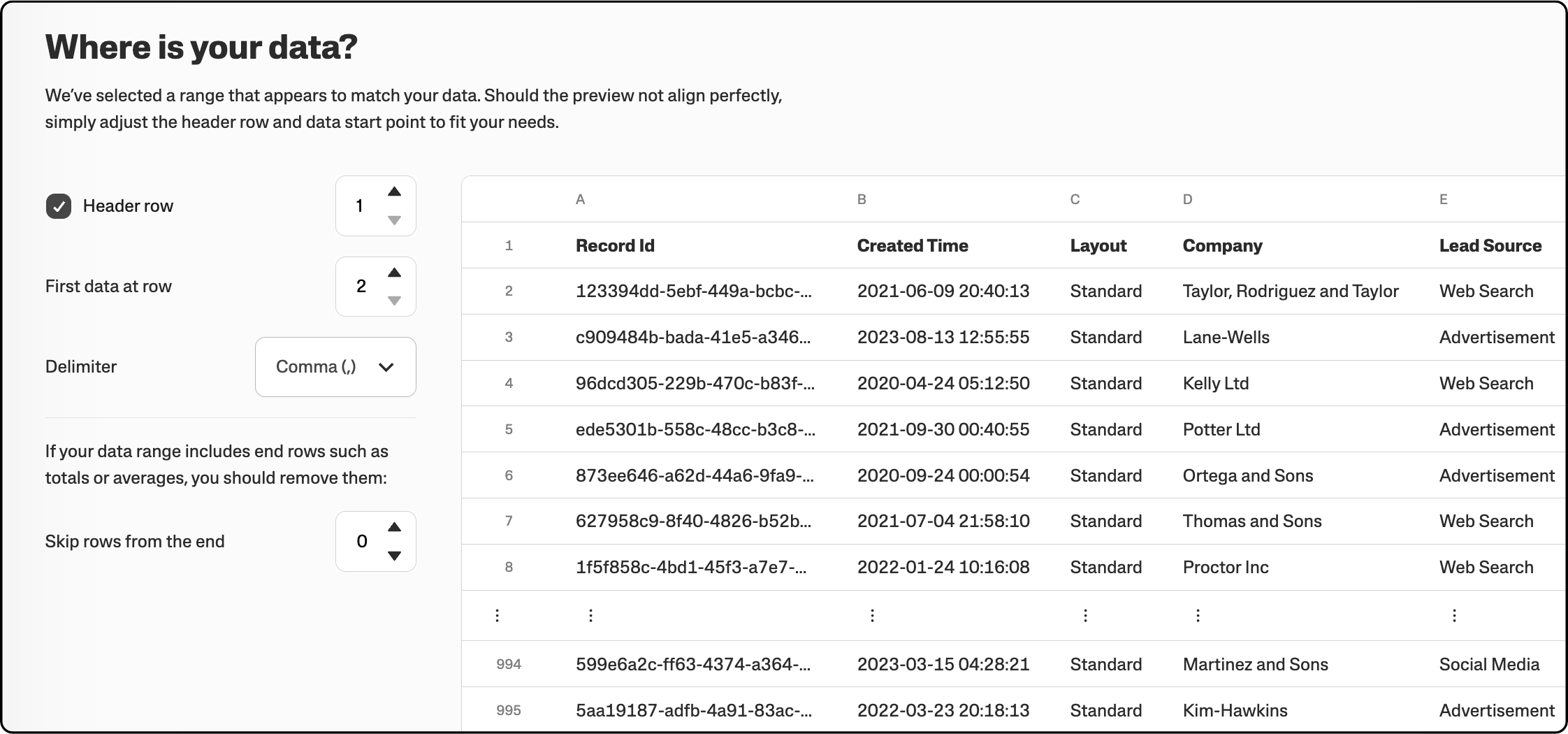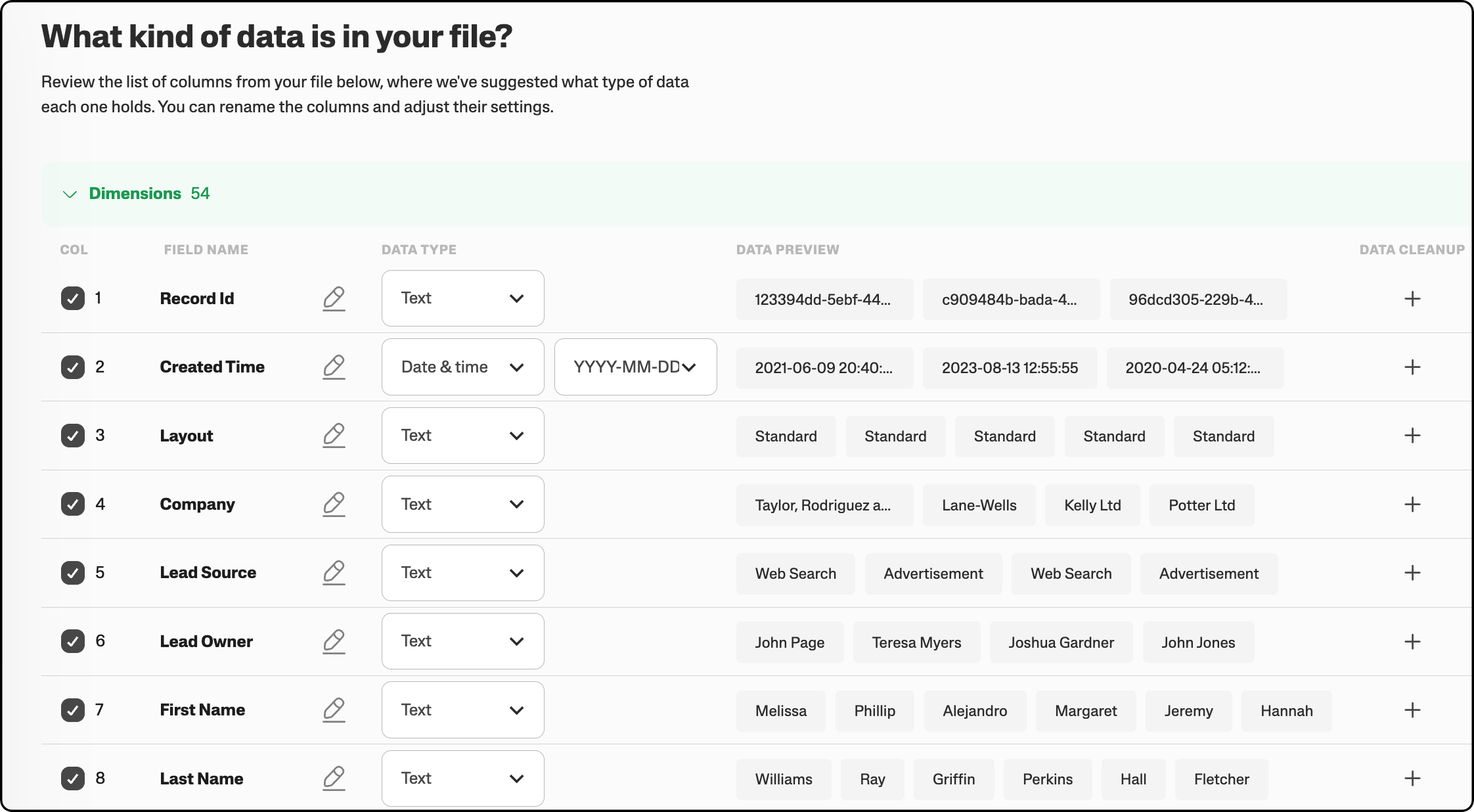 After uploading your data, you’ll see a preview of how your data is organized. This gives you the flexibility to customize the import process according to your specific requirements.