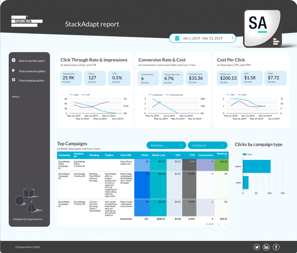 If you’re using Google Data Studio, here’s a StackAdapt template you can start with: