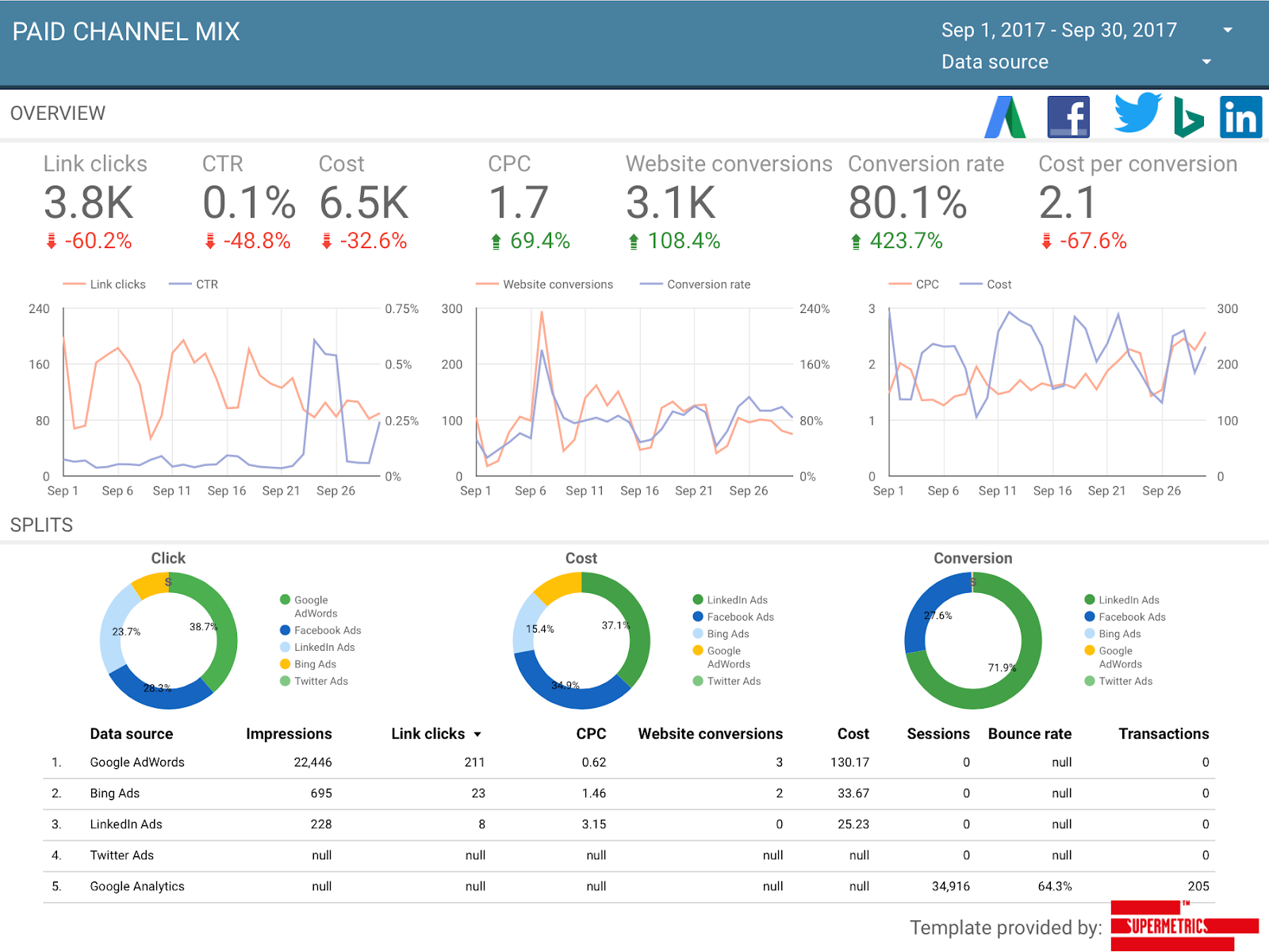If you’re working at an agency, you can use Google Data Studio to create visual reports for each client or create a master report for your team’s internal use and use that as a benchmark library for all your clients.