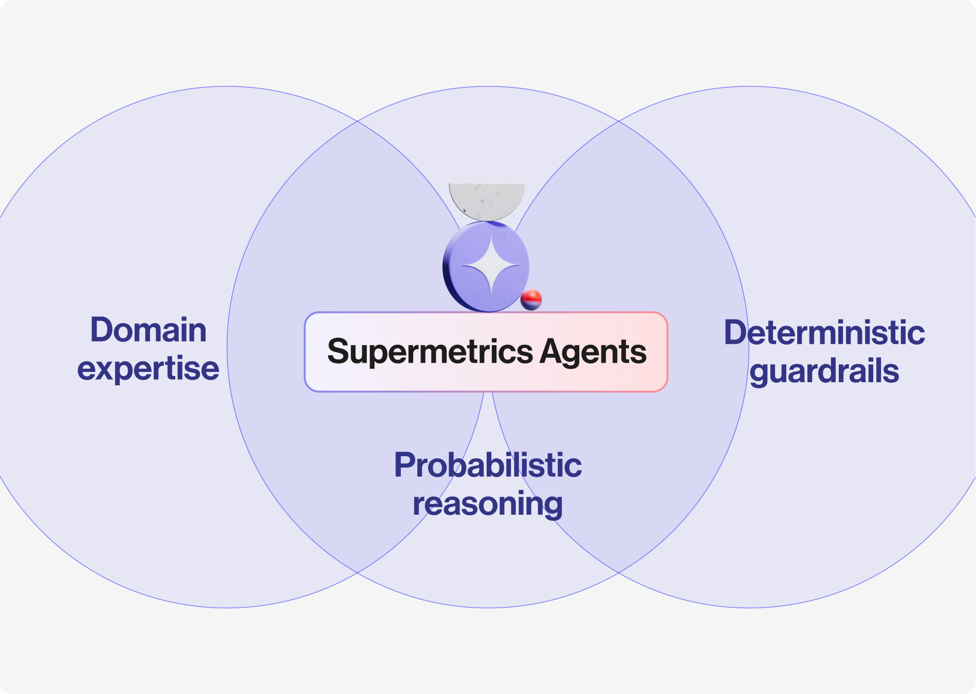 Supermetrics’ hybrid intelligence architecture combines probabilistic reasoning, deterministic accuracy, and deep marketing expertise to make AI agents both reliable and marketing-native. The solution to the "brittle agent" problem is a smarter architecture . Instead of relying on a single, general-purpose AI model, Supermetrics uses a hybrid intelligence architecture built on three distinct pillars: