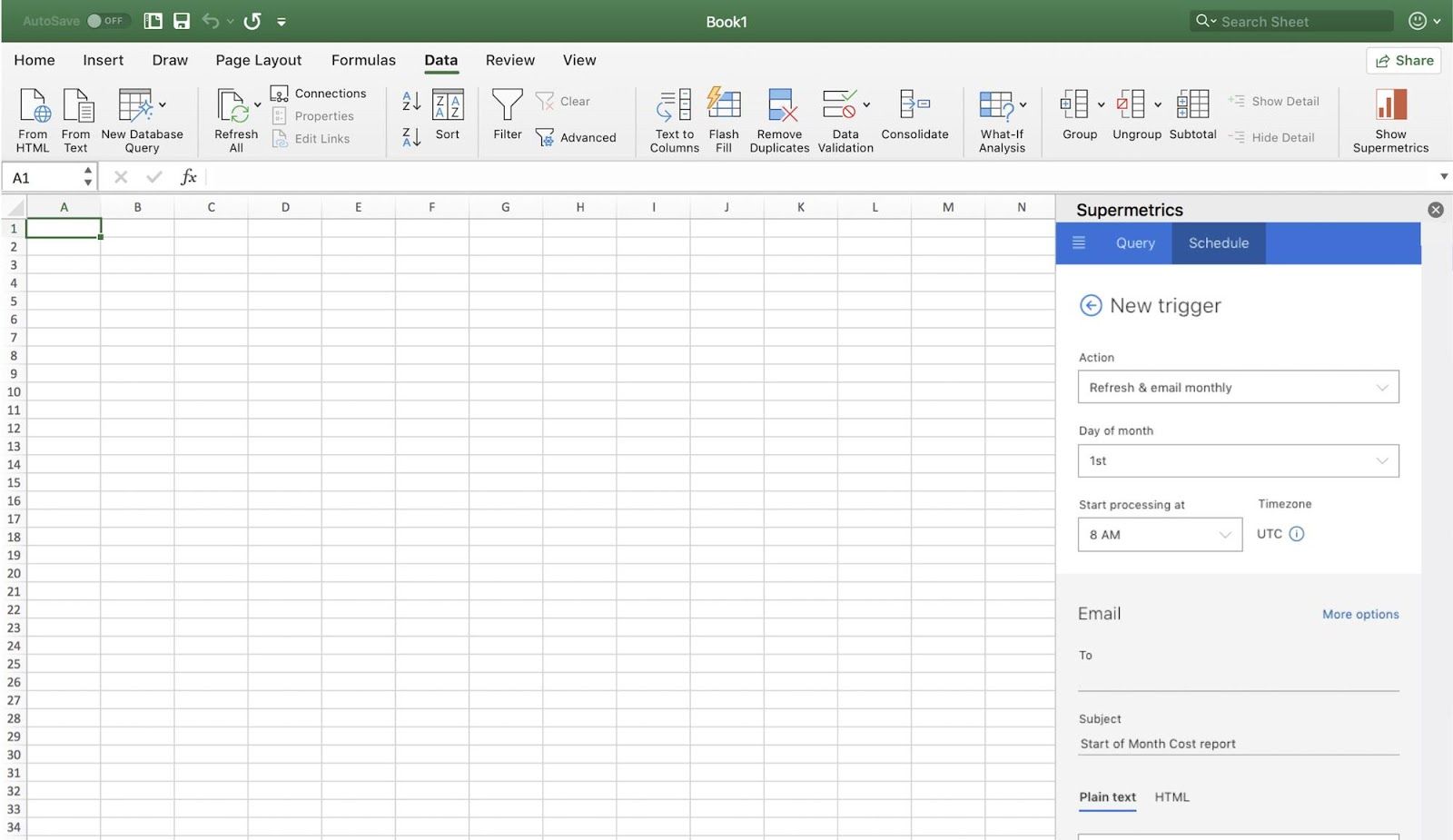 Experience the power of end-to-end automation with Supermetrics. After you have created your report you can easily set up queries for refresh and emailing. There are multiple scenarios you can cover with this feature: