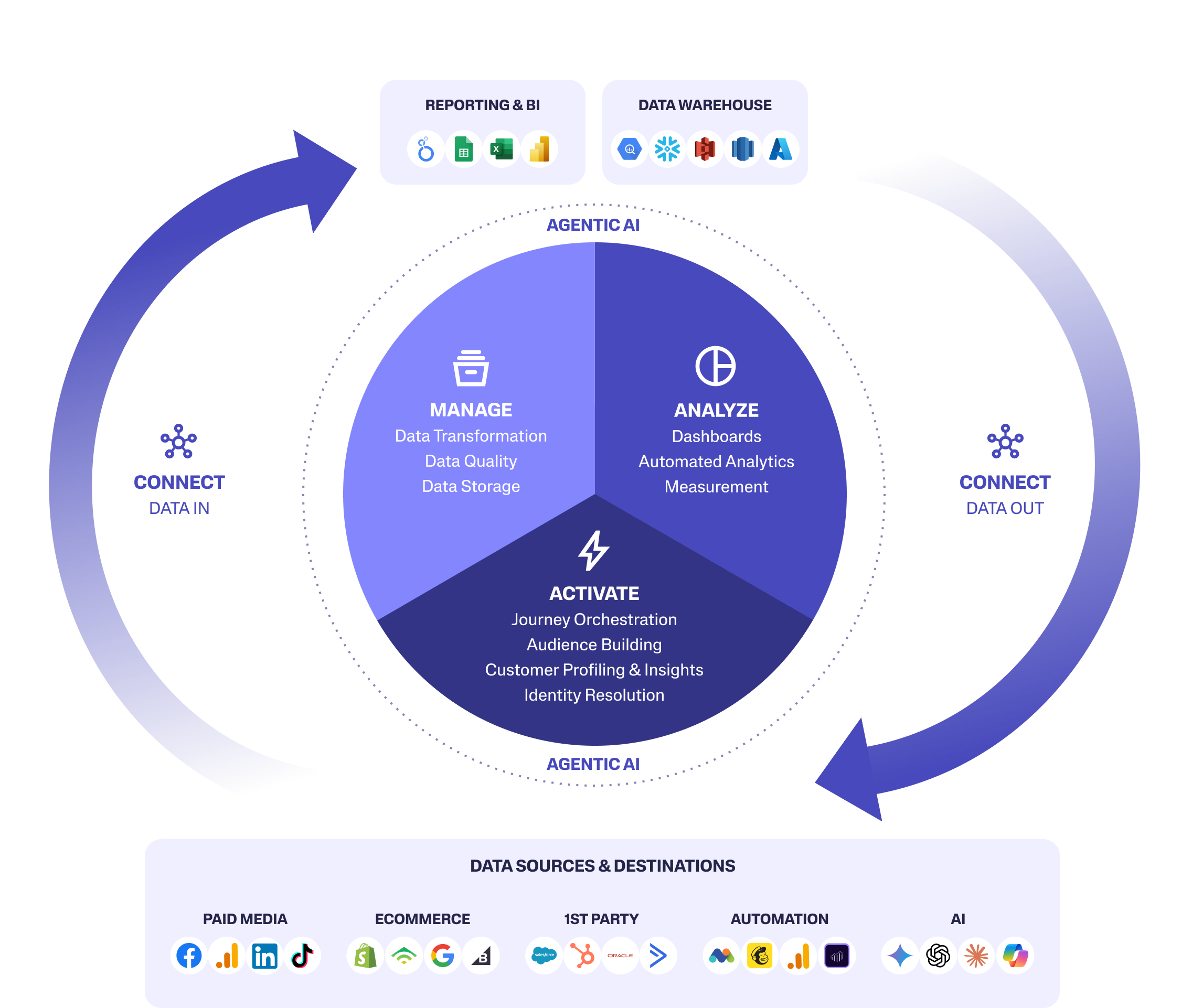 Modern marketing is messy and complex. According to our research, marketers are dealing with 230% more data compared to 2020 , meaning more platforms, data sources, data destinations, and channels. Marketing Intelligence platforms help marketers cut through the noise and make impactful decisions by connecting real-time data from any source to any destination.