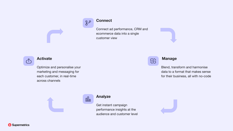 Our plan is to enable this workflow in a fully composable and democratized way for businesses of any size. The Supermetrics platform is: