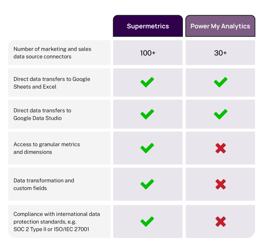 We hope this comparison helps you understand whether Supermetrics or Power My Analytics is the right product for you.