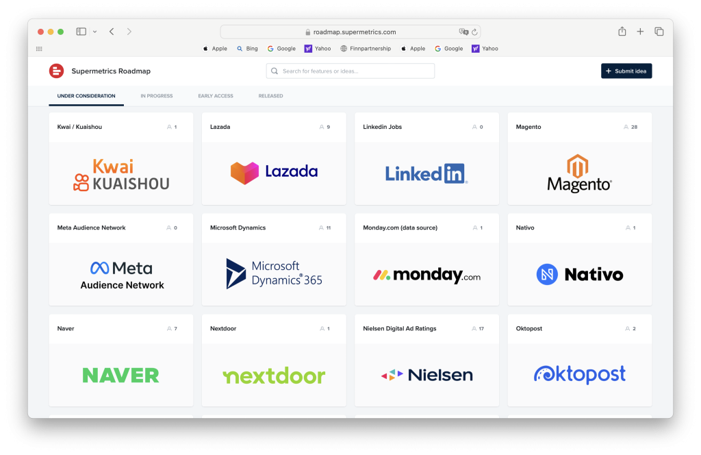 We’re still in the midst of polishing our 2024 plans, but confirmed ones are Amazon Seller Central, Lazada, and Marketo. Take a look at the others from our roadmap that are on our radar. Any connectors you want to see? Head over to the Supermetrics product roadmap and let us know.