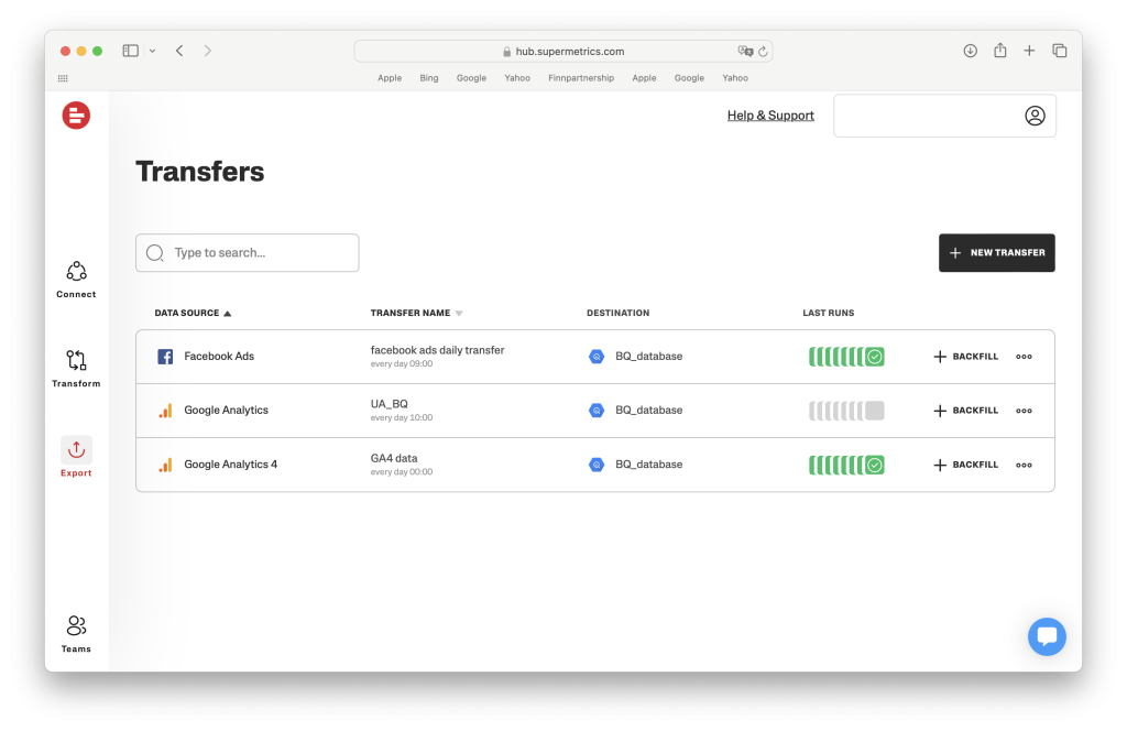 Supermetrics Marketing Intelligence Cloud is a platform that helps marketing and analyst teams get, manage, store, and transform marketing data easily.