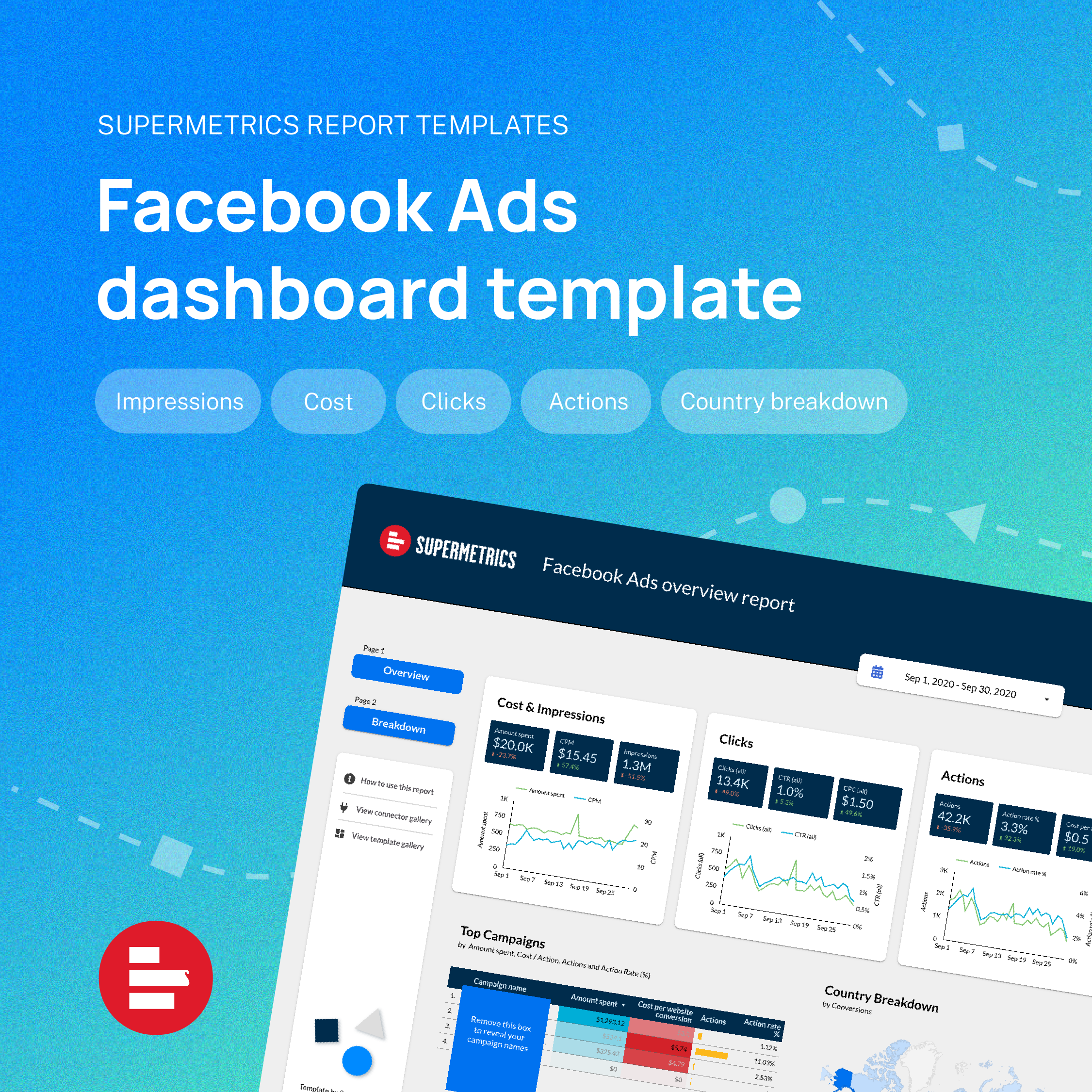 Our free reporting templates can help you quickly visualize your data and find insights. You can easily add multiple templates to one report or customize them by adding your logo or brand colors. These templates are very handy, especially when you need to present campaign performance to different stakeholders.