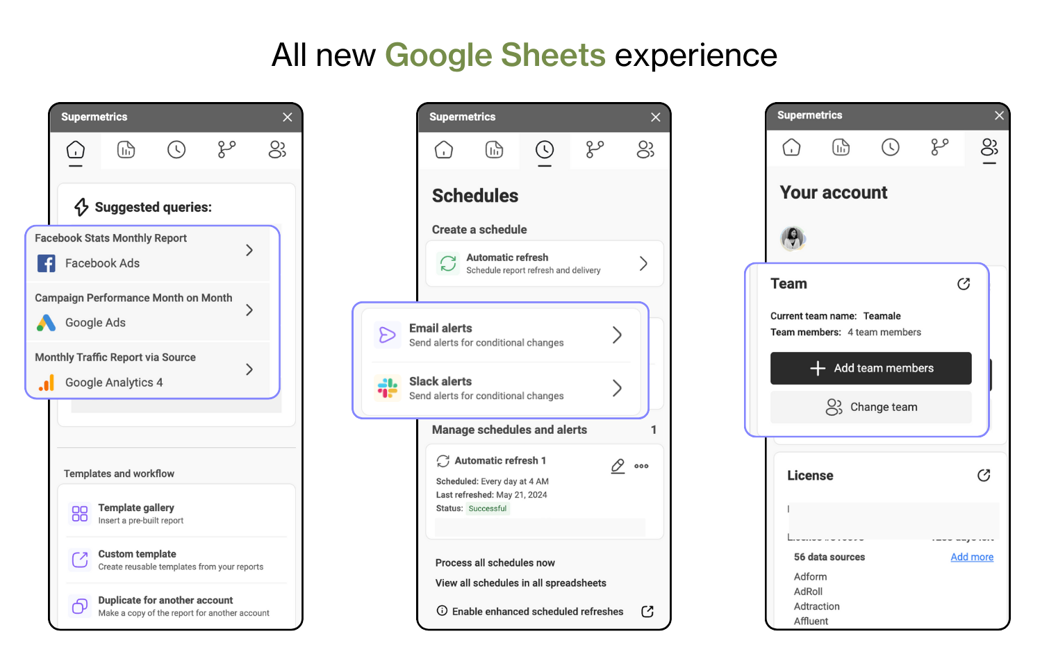 - Usage reporting : Keep track of how your team is using Supermetrics so you can optimize your workflows and ensure you're getting the most out of the platform.