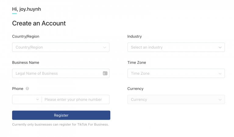 After that, click ‘Register.’ It may take a while for TikTok to approve your company account. After getting the approval, you can access your dashboard and start creating your first campaign.