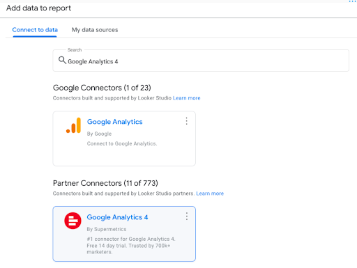 Step 3: Select ‘Google Analytics 4 by Supermetrics’.