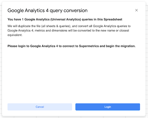 If you have not previously authenticated your GA4 account in Supermetrics, you will be prompted to log in.