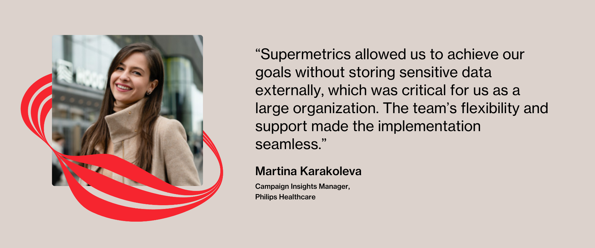 - Legal compliance : Supermetrics did not require storing data externally, addressing Philips' privacy concerns.