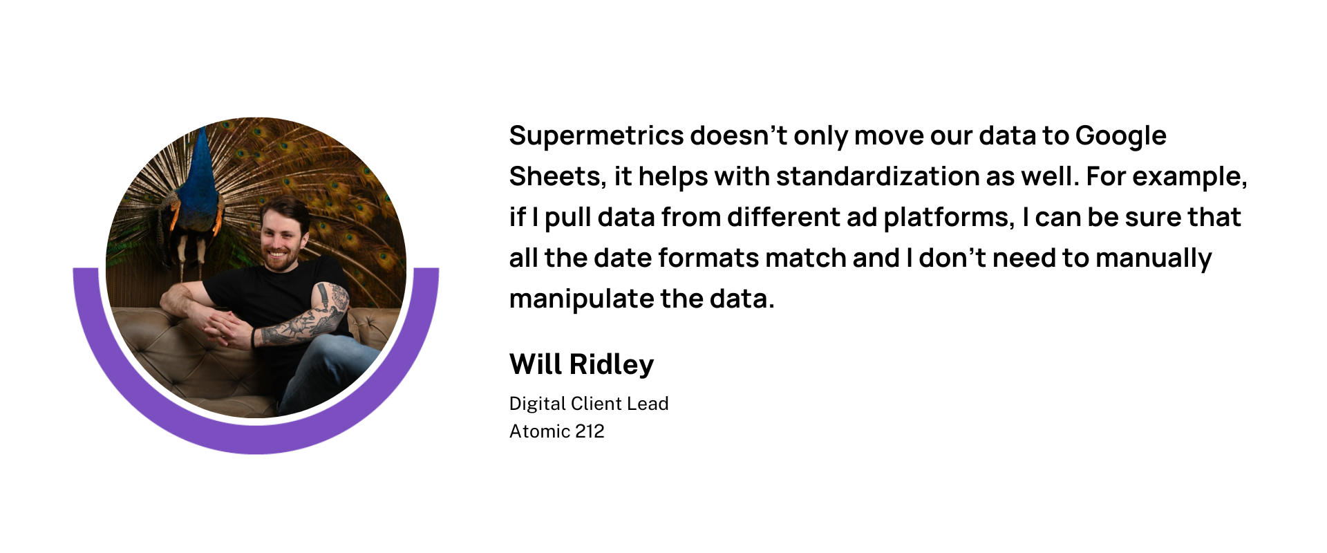 We spoke to Will Ridley, Digital Client Lead at Atomic 212, about their journey with reporting and Supermetrics.