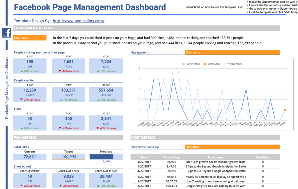 So, besides courses, how does Ben create content around Supermetrics? Sometimes, the process can start from a template. A couple of years ago, he built a dashboard for Facebook Ads that became popular. Then, he wrote a detailed blog post about it, explaining how you go from a blank Google Sheet, which is often daunting to people, to a finalized dashboard for your Facebook Ads. One of the steps involved was to connect the data via Supermetrics.