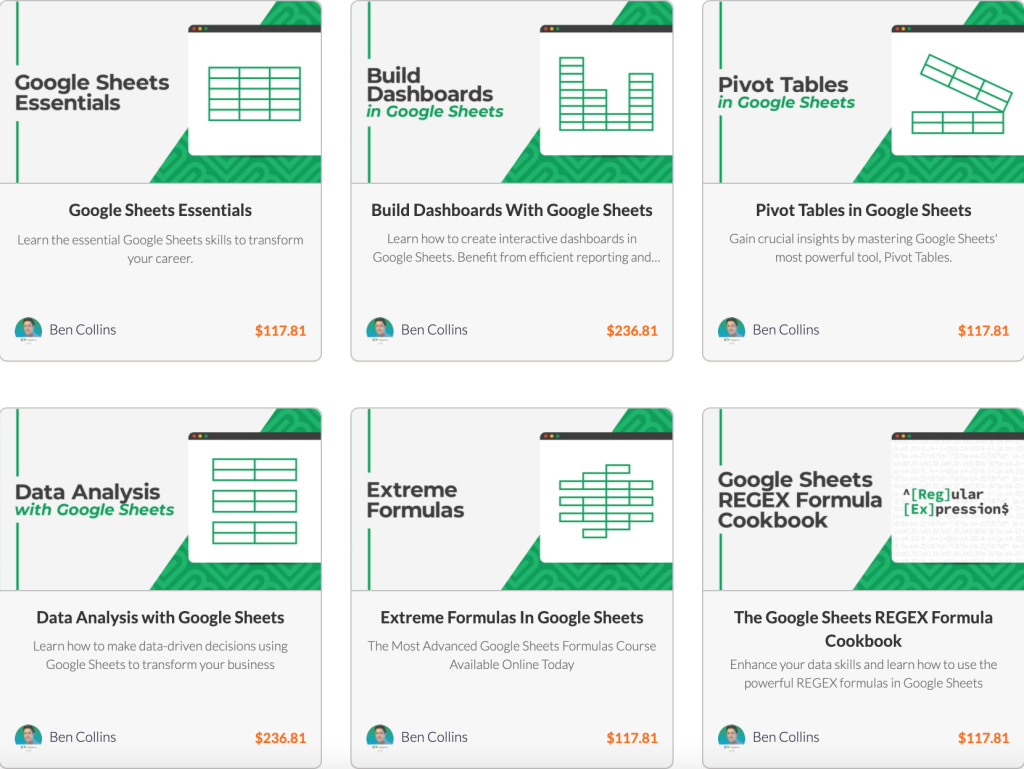 - He offers a variety of video and live courses to help people from all over the world take their Google Sheets and Apps Script knowledge to the next level