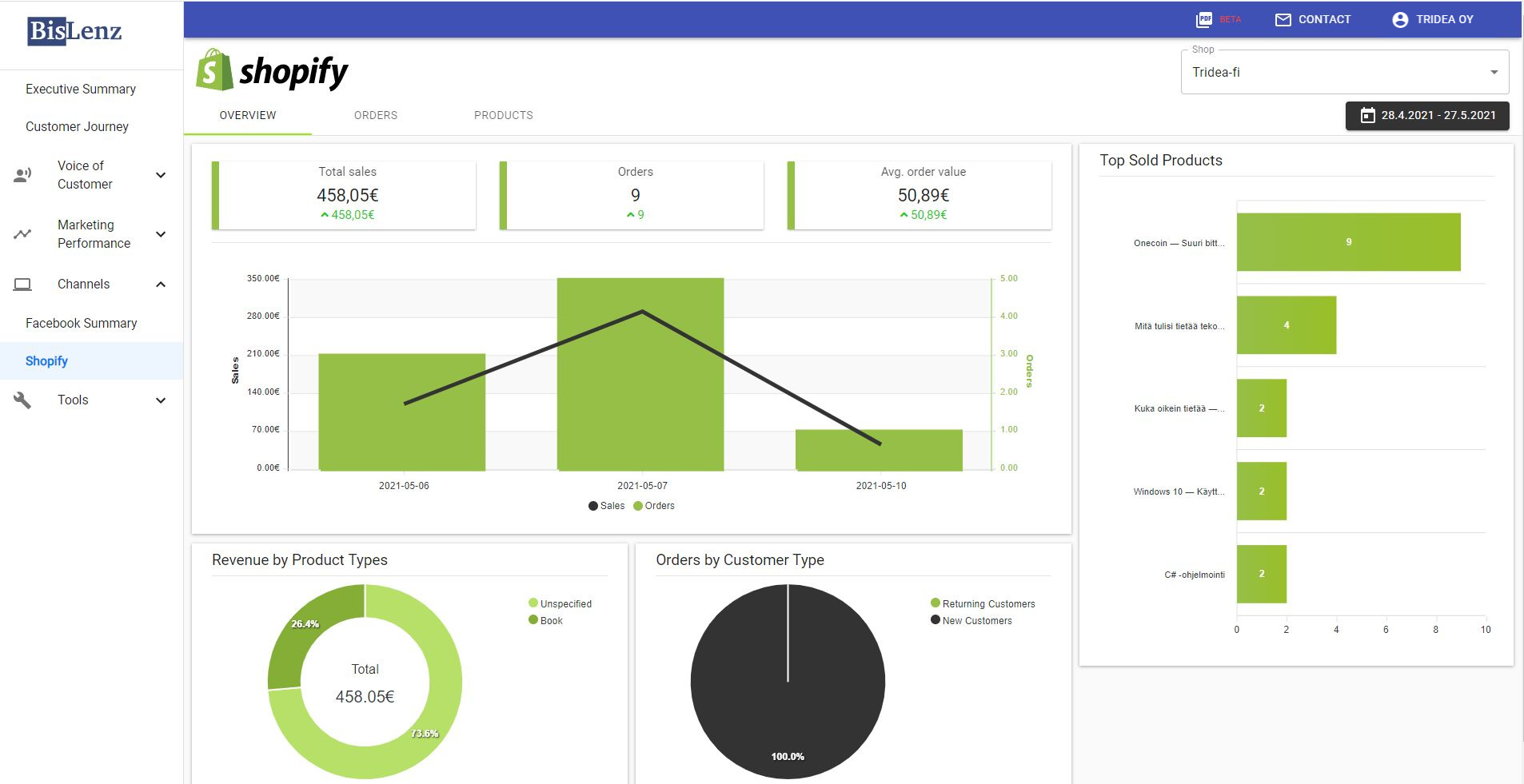 Marko says, “A while back, we started looking into integrating Shopify data into BisLenz. Getting Shopify data flowing into our reports only took a few hours with the Supermetrics API.”