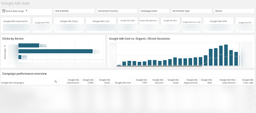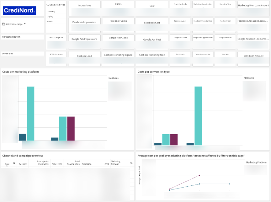 The ‘Marketing cost’ dashboard provided a high-level overview of CrediNord’s marketing performance. With it, Robert and his team can easily understand how much they’ve invested in marketing and how much they’ve got in return.