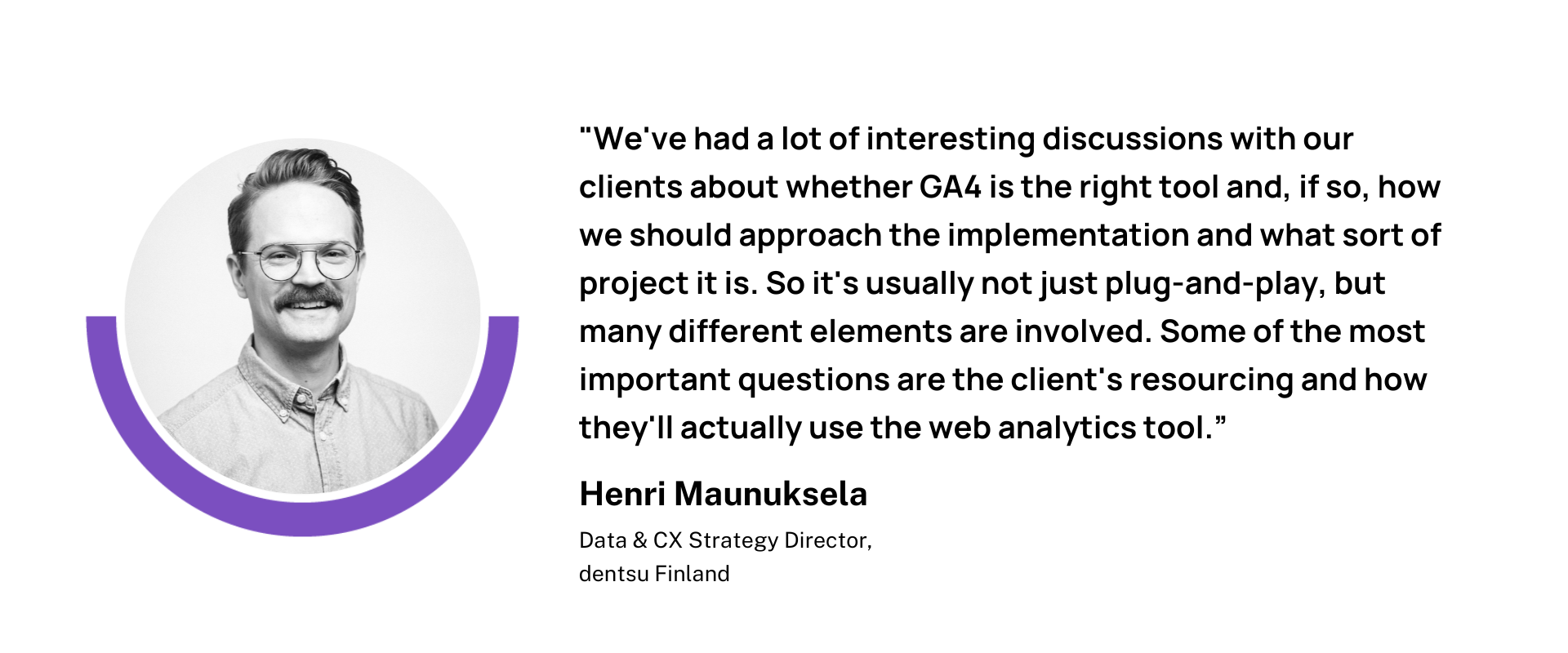 - dentsu Finland has worked on several GA4 projects and has devised a 4-step delivery model to manage web analytics discussions