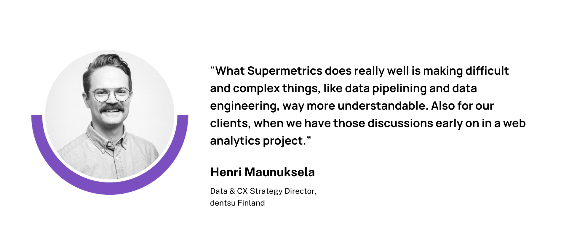 Learn how a marketing agency, dentsu Finland, migrated their clients from Universal Analytics to Google Analytics 4 and helped rethink their data collection strategy with Supermetrics.