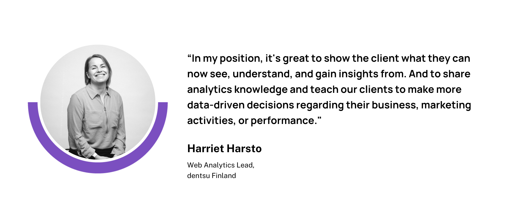 As an agency, dentsu Finland uses Supermetrics for many different things. Both Harriet and Henri mention that Supermetrics has come up as a solution for many of the GA4-related challenges clients have struggled with. For example,