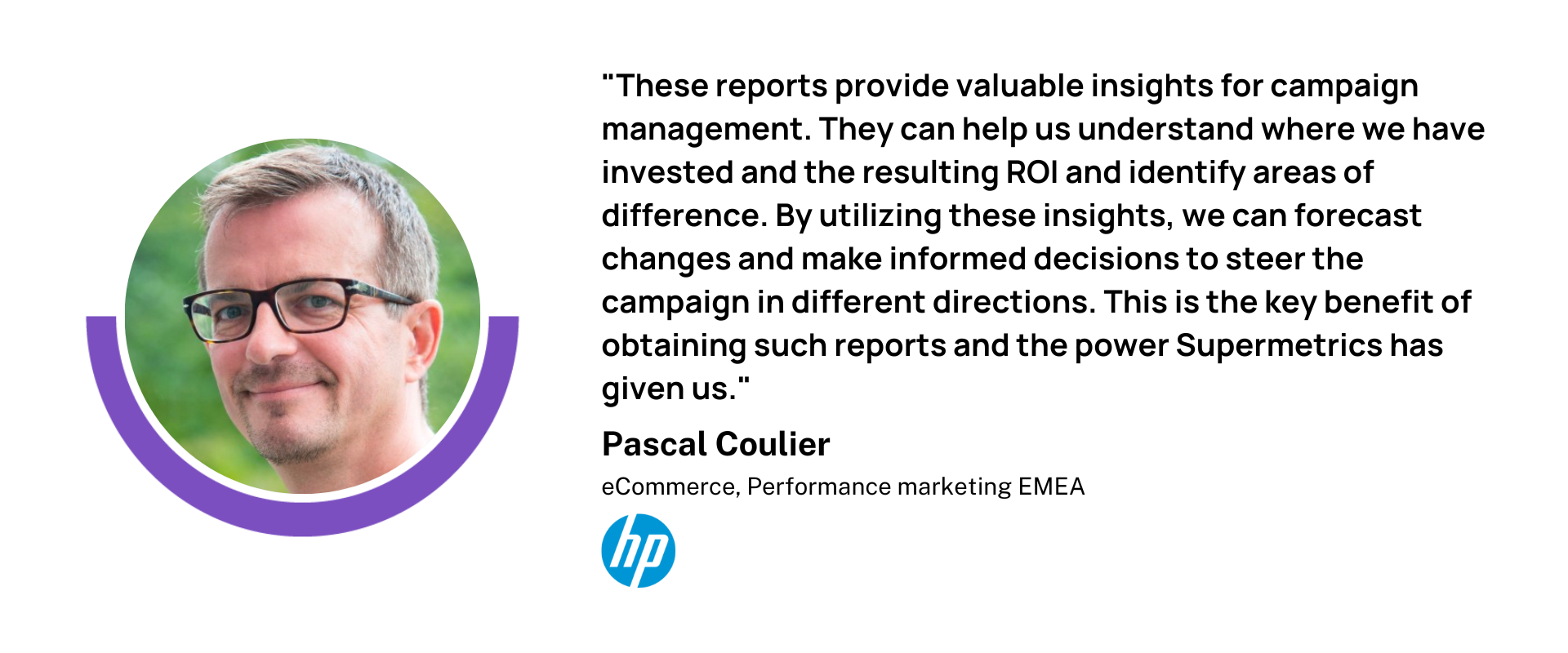 Now that Pascal has implemented Supermetrics and given simple access via shared connections, it’s given HP’s teams freedom to explore data themselves. He strongly believes that truly understanding the impact of specific campaigns requires a deep dive into the details.