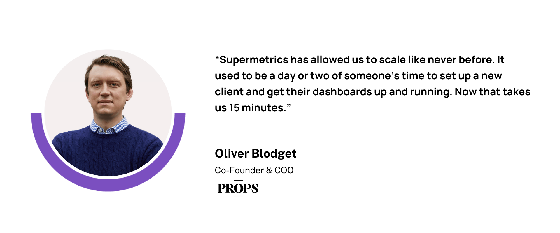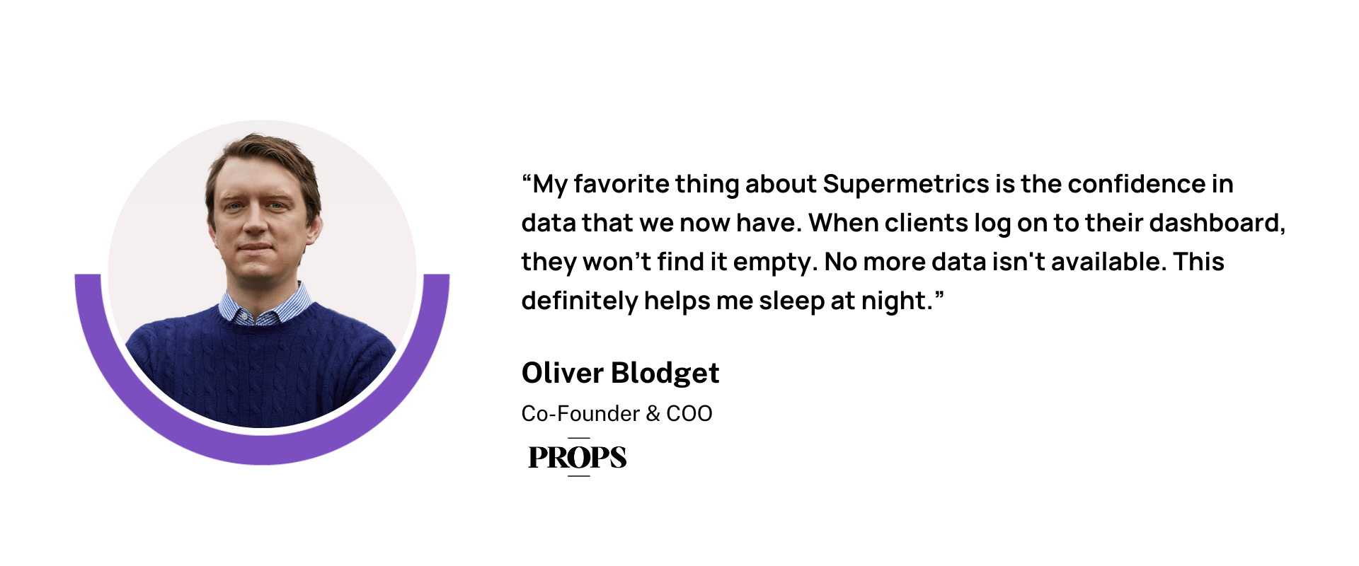 Oliver says, "Without Professional Services, we’d had to grow our team significantly to build our current data stack and to upgrade our client reporting. With Supermetrics, we've been able to focus on improving our AI capabilities and growing our client portfolio."