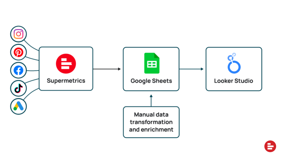 Before centralizing its marketing data into BigQuery , Props used Supermetrics' Google Sheets and Looker Studio (formerly Google Data Studio) connectors to extract marketing data from ad platforms.