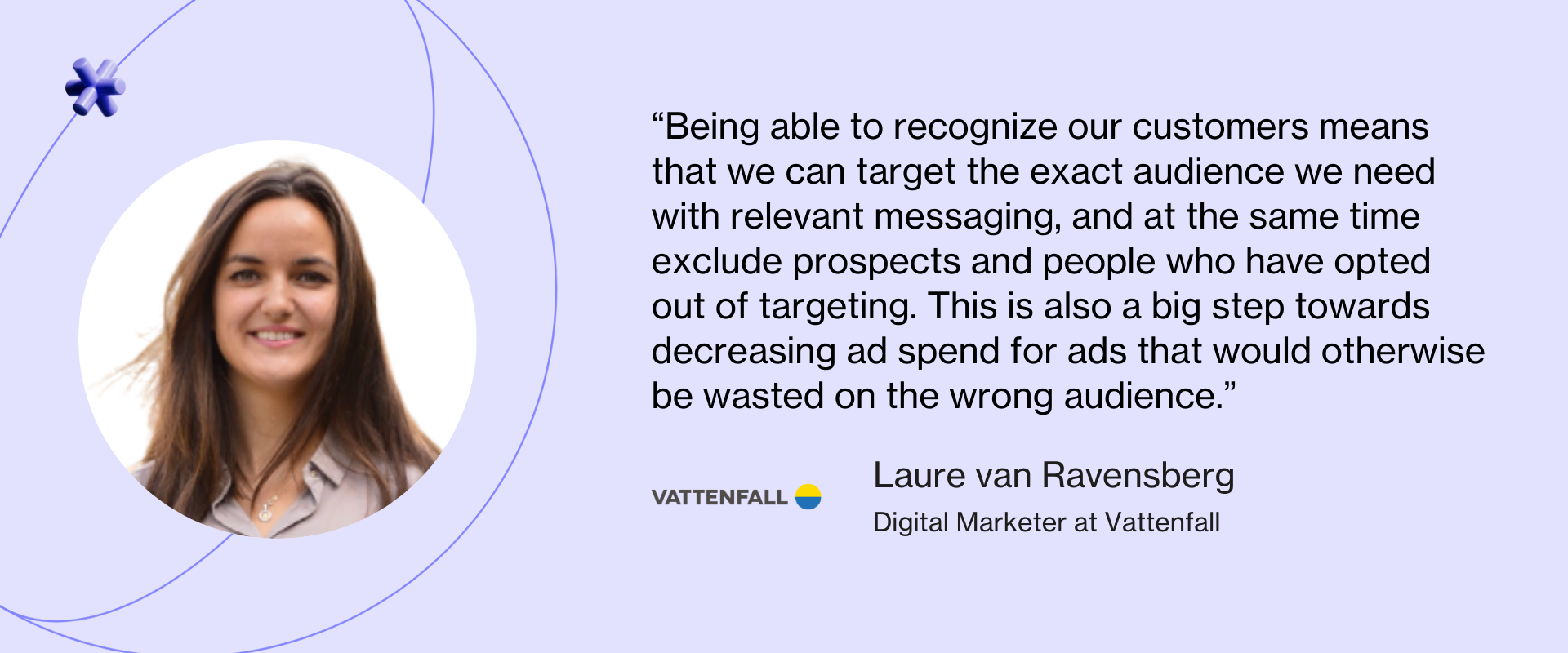 Of course, the long-term value of this use case lies in the fact that Vattenfall can now distinguish customers from online prospects, and thereby create truly personalized customer journeys. Being relevant, while simultaneously decreasing unnecessary advertising costs, is a big step towards making Vattenfall future-proofed and towards fulfilling its mission to best serve the needs of its customers.