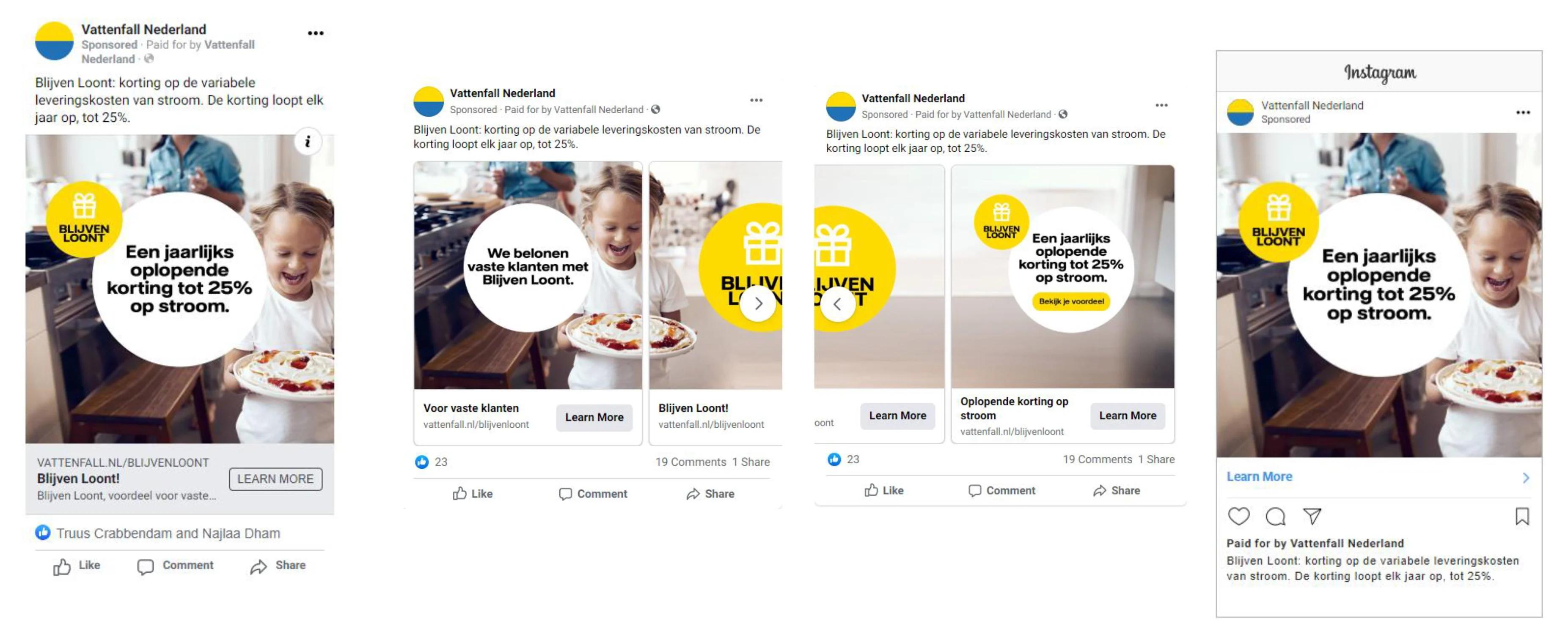 The Facebook and Instagram banners communicated the extra benefits that customers would get if they continued with Vattenfall instead of switching to another energy supplier. The banners also promoted a special offer that allowed customers to extend their fixed-term contracts.