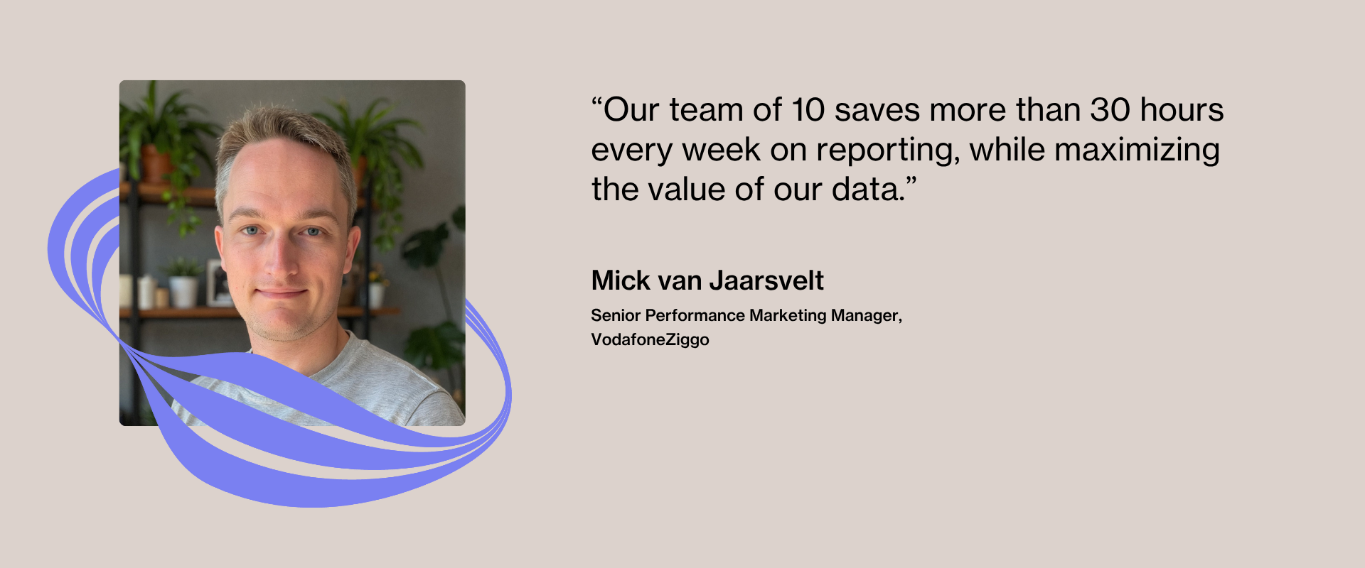 VodafoneZiggo is a Dutch company offering communication and entertainment services to consumers and businesses. We sat down with Mick van Jaarsvelt, Senior Performance Marketing Manager, to uncover their journey with marketing data and reporting. Mick oversees the performance team’s data architecture and reporting processes, and enables the team to leverage data for optimal performance.