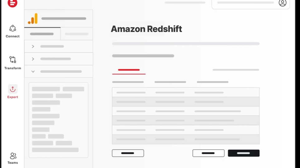 Connect all your marketing data to Amazon Redshift. No SQL, no setup headaches.