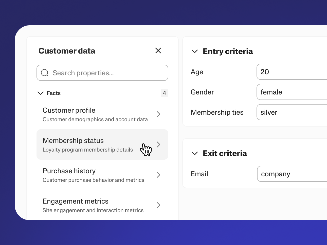 Build dynamic and static audiences using engagement data, profile data, and AI insights with advanced segmentation and audience-building rules to activate directly into customer journeys.