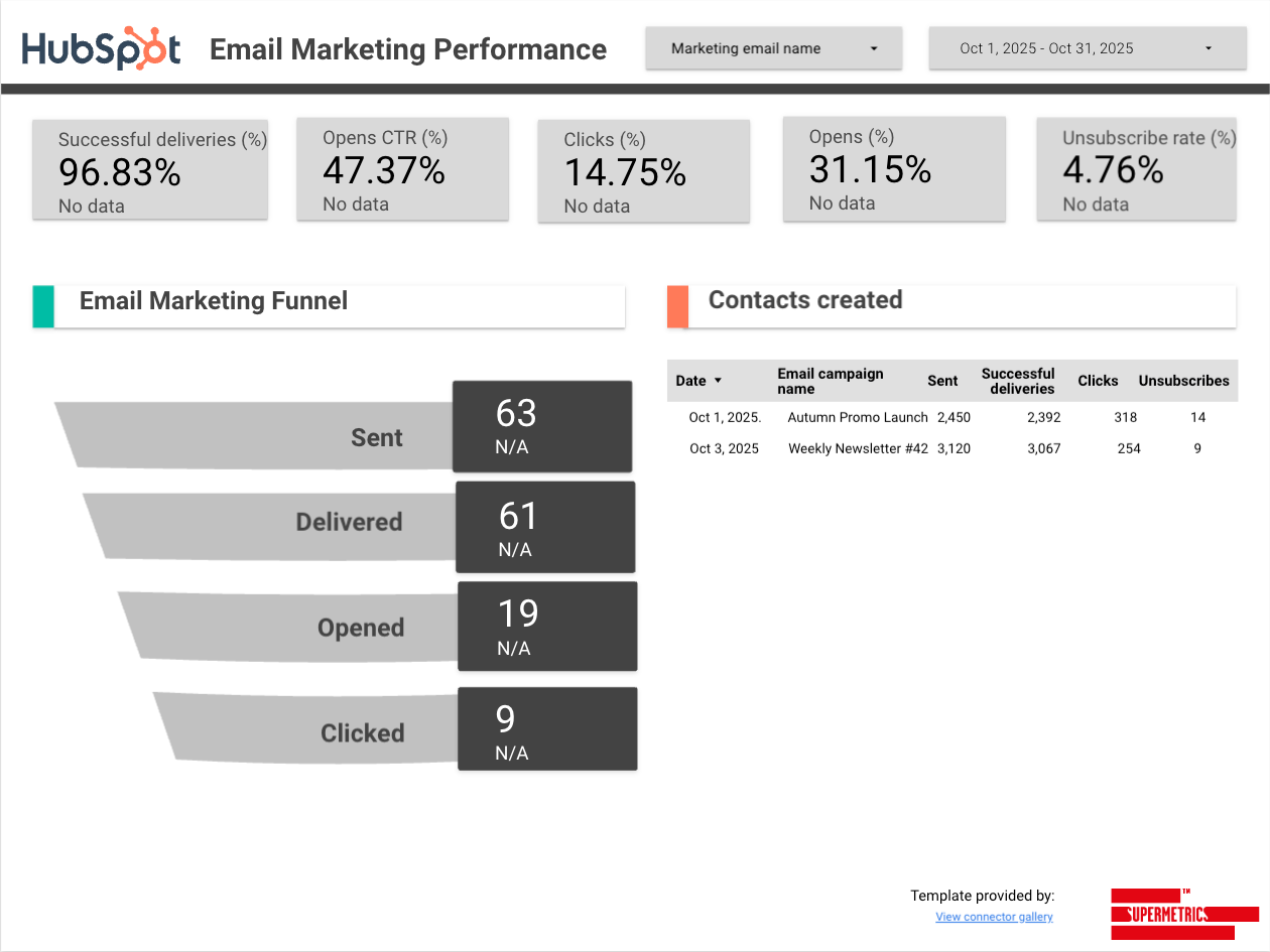 HubSpot email marketing template for Looker Studio
